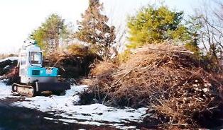 伐採した樹木等は機械で細かく砕き、チップにします。