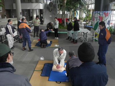 AED操作と心肺蘇生講習会ならびに防災・消防訓練