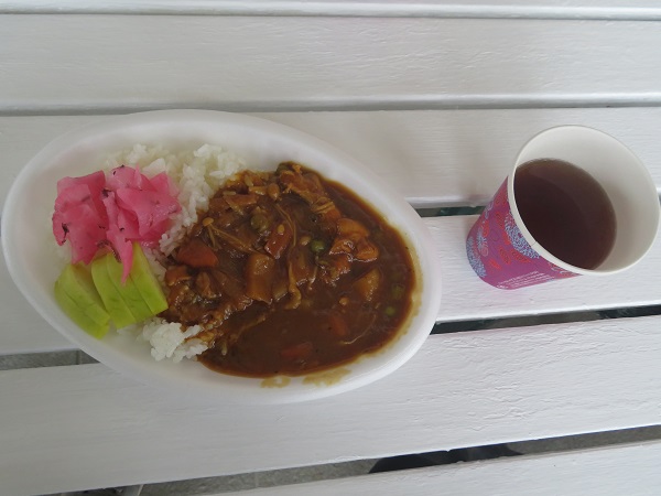 今回のディナーは、コシイブキ新米の発芽玄米とスパイスの効いたレッドカレー グリーンパパイヤの酢漬けでした