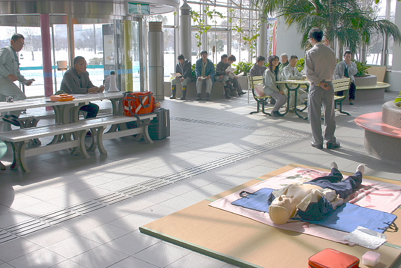 災害食研修、普通救命講習会、消防通報訓練、消化訓練、