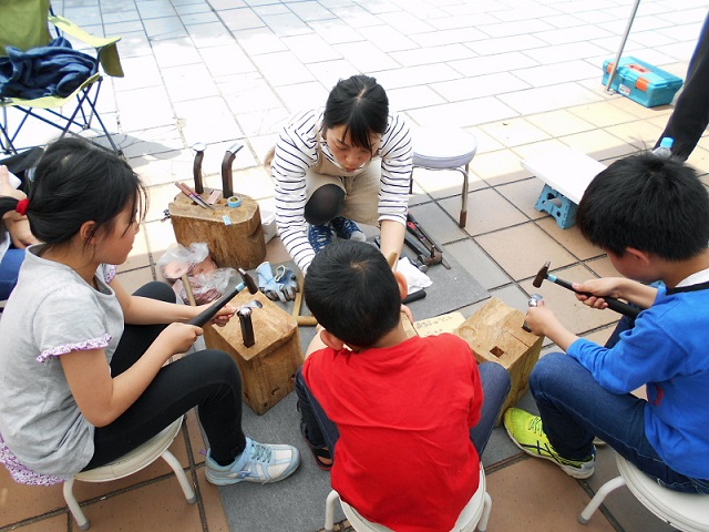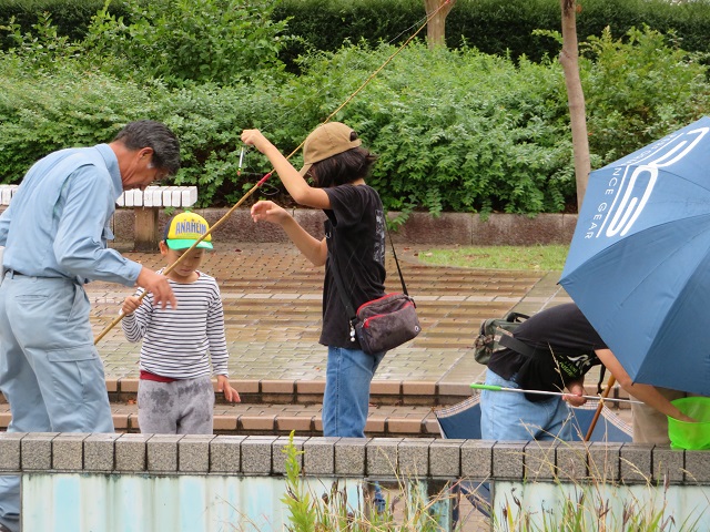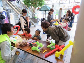 あいにくの天気でしたが、バルーンアートやシュロバッタ、魚釣りなどを楽しむ親子でにぎわいました。(h)