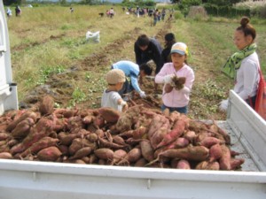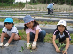 サツマイモの植付け作業をしました。小さいお子さんたちでも 力を合わせれば、あっという間に作業終了。