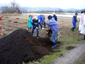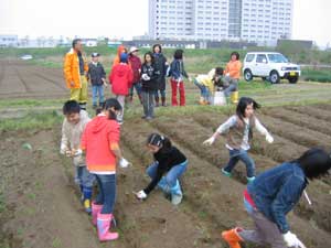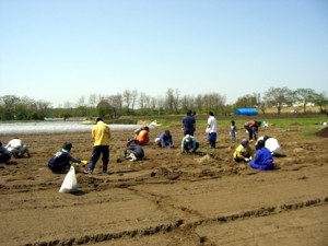 有機栽培体験教室が開かれました。今回はジャガイモの植え付けです。