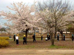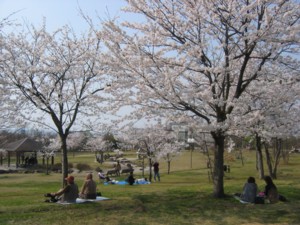 ■4月15日桜が咲いたみどりの広場の賑わい。